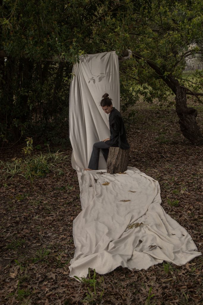 Su arte es una expresión de quién es: una búsqueda incansable de la fusión entre mundos, de la observación de los encuentros y de la integración de lo distinto. Le interesa explorar nuestra profunda relación con el entorno, los vínculos, y aquello que consideramos esencial para transitar esta tierra.