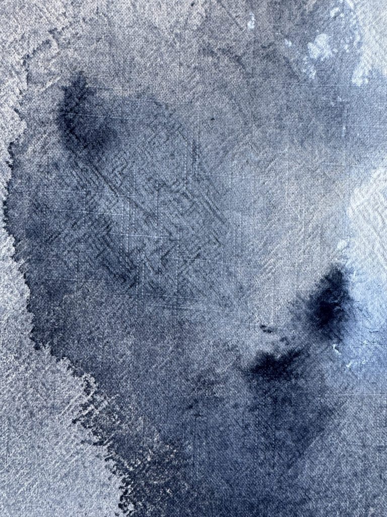 Tintes naturales, acrílico y grafito sobre lino.