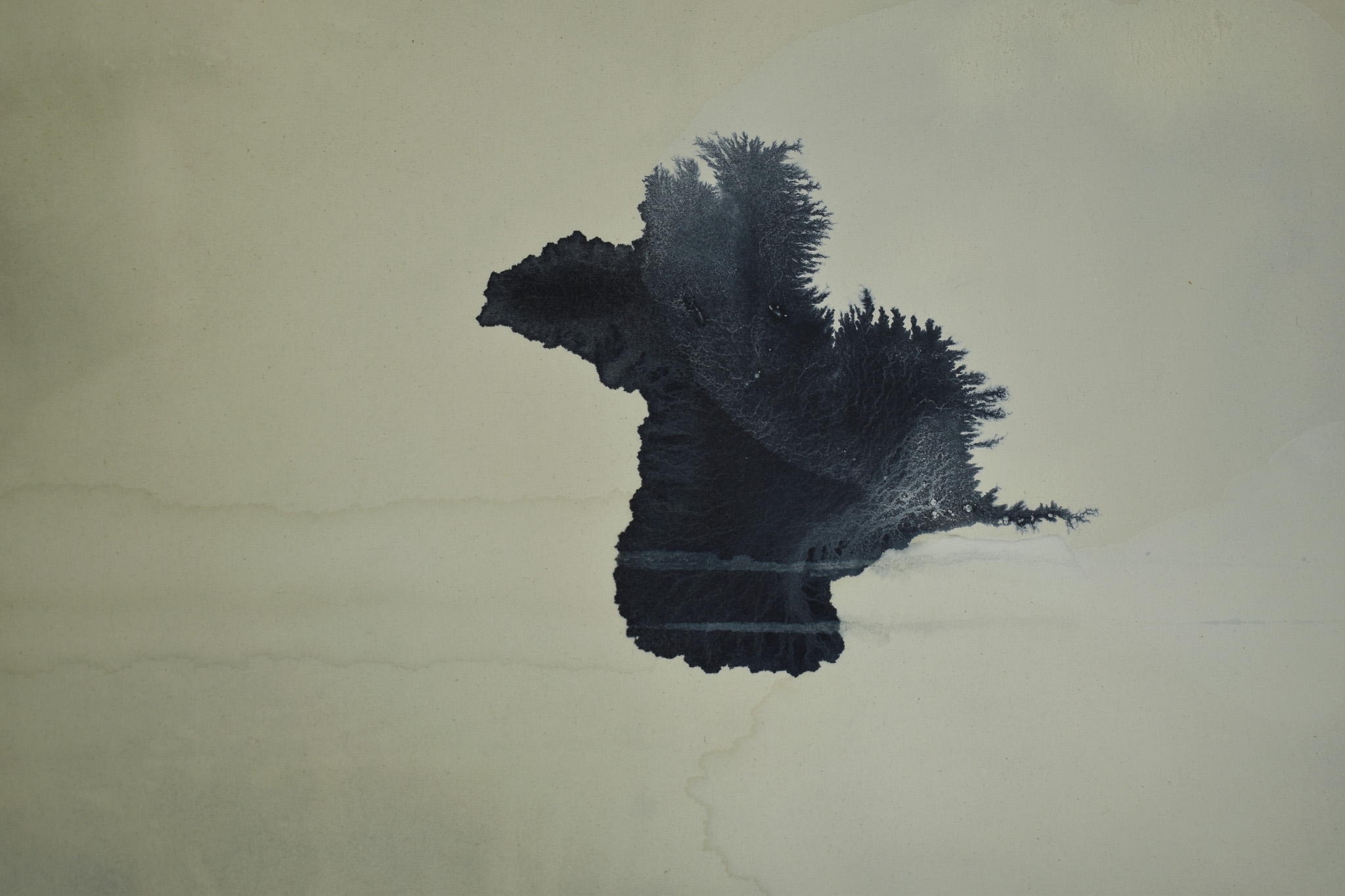 La Serie Fairy Pools está inspirada en un viaje a Escocia, Irlanda e Inglaterra, donde conocí en profundidad sus paisajes, ríos, lagos y montañas. La magia del lugar, junto con su historia y sus relatos, me llevó a plasmar el movimiento del agua con tintes naturales sobre distintos tipos de telas. Para lograrlo, utilicé diversas técnicas y tintes como índigo, cáscara de cebolla, gallnut que me permitieron visualizar y reflejar el flujo, la translucidez y la textura del agua en cada obra.